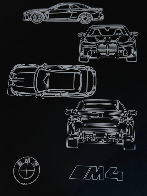 BMW M4 Blueprint Wall Art White Ink on Premium Black Card
