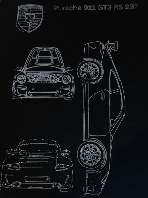 Porsche 911 GT3 RS 997 Technical Drawing - Hand-Plotted Artwork